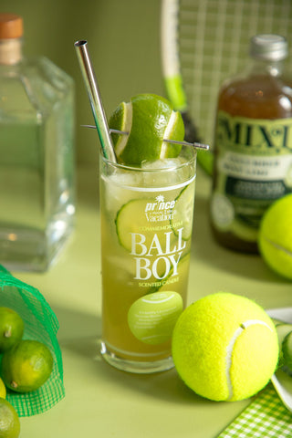 The first is a racket club worthy rendition of a gin fizz inspired by the Vacation Inc. and Prince Tennis candle collaboration honoring ball boys and country clubs everywhere.