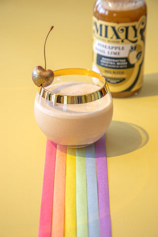 You’ll feel like you’ve found the pot of gold at the end of the rainbow every time you sip this creamy and delicious cocktail. The combination of heavy cream, Mixly Pineapple Basil Lime, and Irish Whiskey will charm you with its smooth texture and citrusy flavor. After shaking, fine strain into a chilled glass for an extra velvety cocktail.