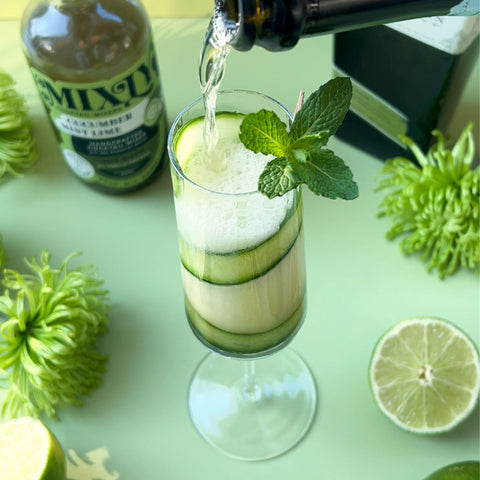 Not a big beer or whiskey fan? We’ve got you covered. At Mixly, we love our French 75 variations, and our newest riff will not disappoint. The base of this cocktail is a delicious mix of a botanical gin and Mixly Cucumber Mint Lime shaken with fresh mint leaves for a cool and rejuvenating effect. Top it off with your favorite sparkling wine and the result is a bubbly and refreshing cocktail that resembles sparkling, emerald green tide pools and is sure to be a crowd pleaser!